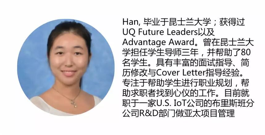 简历,就是申请工作时候的标签贴,一眼看过去就是你的能力和经验。你的简历能不能让HR一眼看到他们需要的东西,就是一份简历是否合格的标志。除了general的澳洲简历模板,匠人还为你的简历提供个人定制修改业务,让你的突出优势一眼就能被HR看到,能力和经验完美契合。