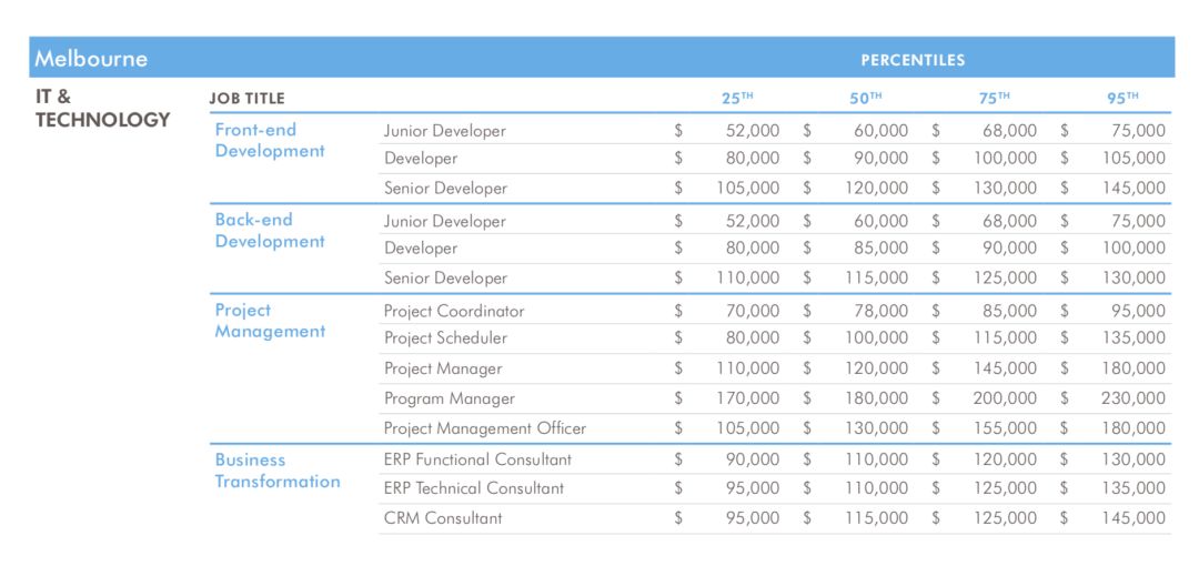作为即将成为澳洲第一大城市的墨尔本,针对于IT professional的需求上,紧随悉尼其后。墨尔本也不乏一些大公司, 比如Rea,Envato,埃森哲等等,据说Google要在墨尔本开新办公室。