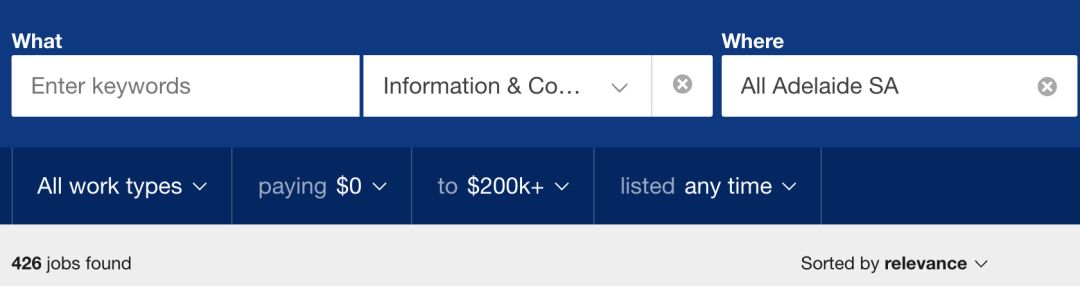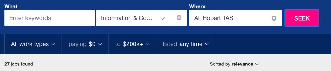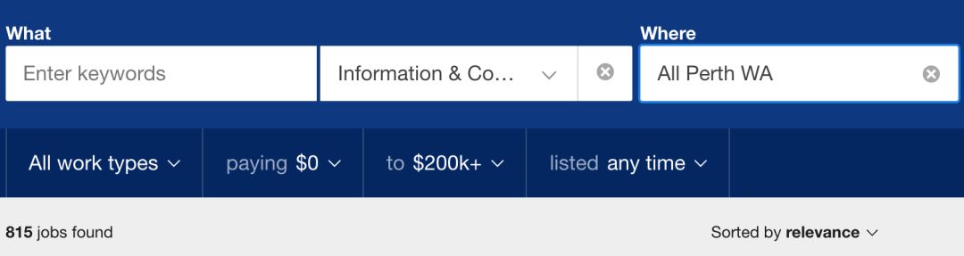 下面是从Seek截图,仅供参考(Seek不是唯一职位数据来源,不能完全代表岗位需求)与后面的城市岗位需求,是很明显的。这也是匠人在悉尼的学员的就业率明显比其他城市高,个别就业班达到了(100%全职就业率)