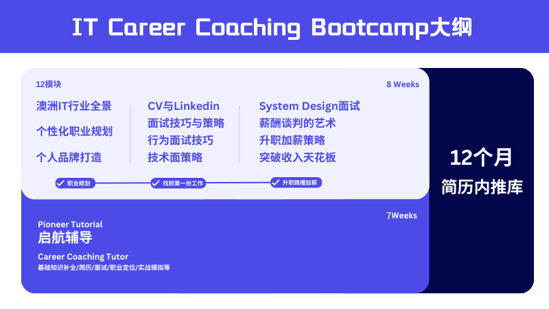2 个月的 Career Coaching,助力你从职业规划,简历,面试,谈薪水等多方面得到提升!