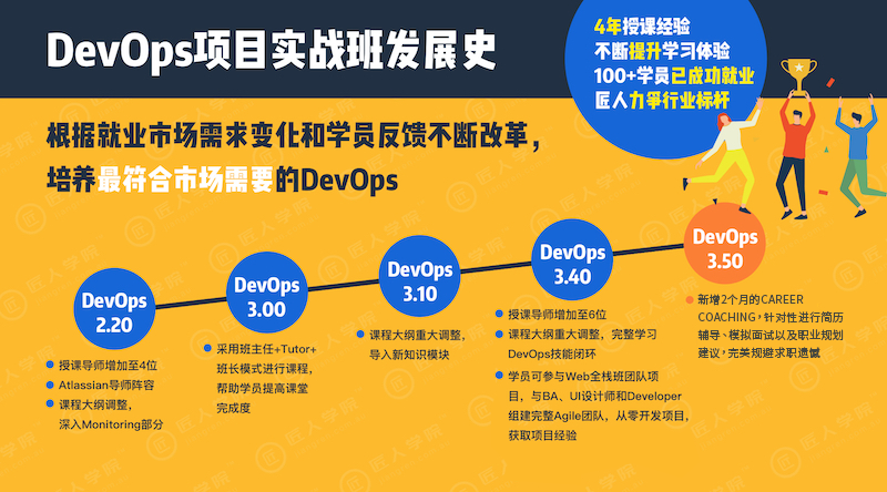 开课 4 年,我们不断根据市场需求和学员反馈改革课程,培养最符合市场需要的 DevOps。