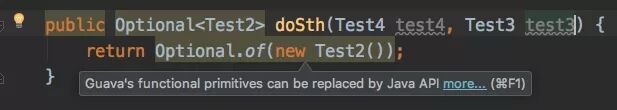 不过IDEA默认会显示黄色,提示让你将Guava表达式迁移到Java Api上。
