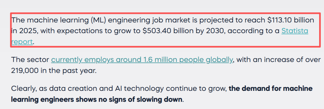 根据 Statista 的一份报告,机器学习 (ML) 工程就业市场预计到 2025 年将达到 1131.0 亿美元,预计到 2030 年将增长到 5034 亿美元。