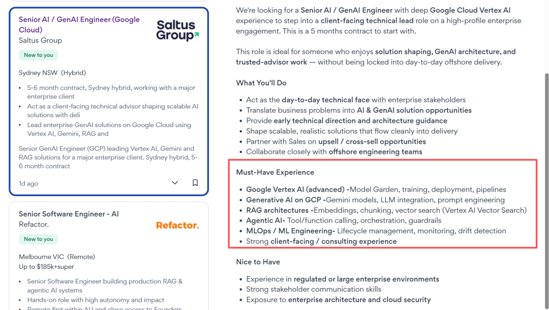 现在的开发模式,已经从 Copilot(辅助写代码)进化到了 Autopilot(全自动代理)。 在澳洲,敏锐的科技公司已经开始要求候选人懂 MCP (Model Context Protocol) —— 这是让 AI 能够连接数据库、读取本地文件、操作第三方工具的核心协议。