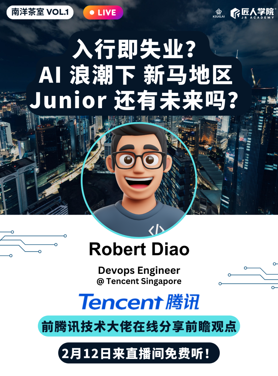 这是匠人学院和KSUG.AI联合打造的一个新栏目——灵感来自新马的Kopitiam(咖啡店)文化,几个行业里的人坐在一起,卸下职场包袱,用圆桌聊天的方式,聊聊AI时代Junior到底该怎么选择前路。