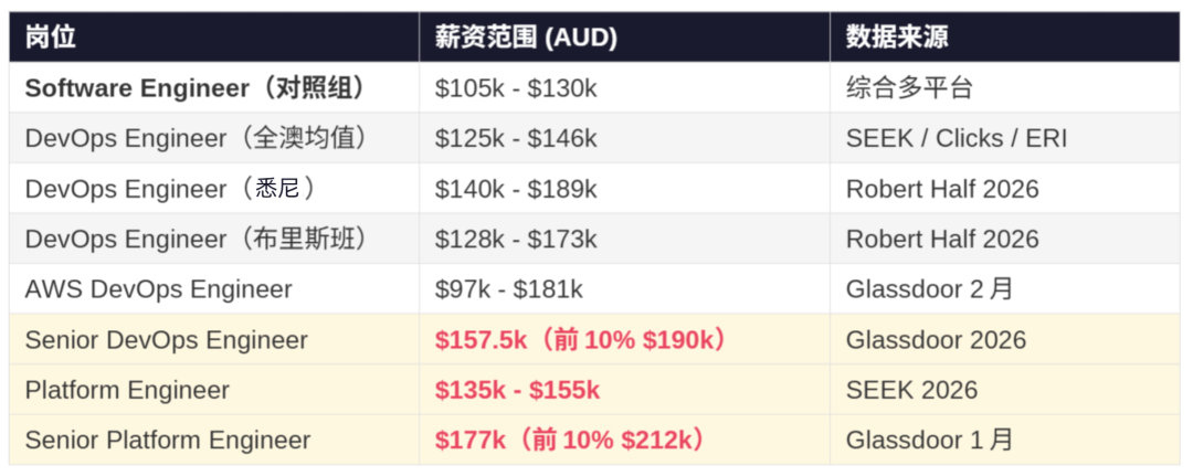 在悉尼,DevOps 的薪资范围高达 $140,170 - $189,390;而即便是在布里斯班,也能达到 $128,380 - $173,460。更残酷的是,这个差距还在拉大!