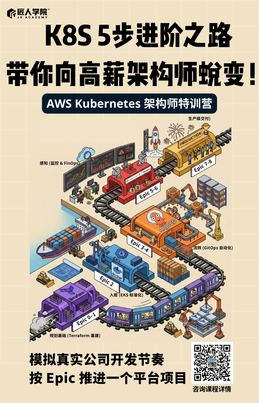 如果你现在卡在 $100k - $120k 的区间,想往 $180k+ 突破?说实话,缺的往往不是"再看一门课",而是一次把企业级 Kubernetes 项目从头到尾跑通的经历。《AWS Kubernetes 架构师特训营》 正是为解决这个问题而设计的。