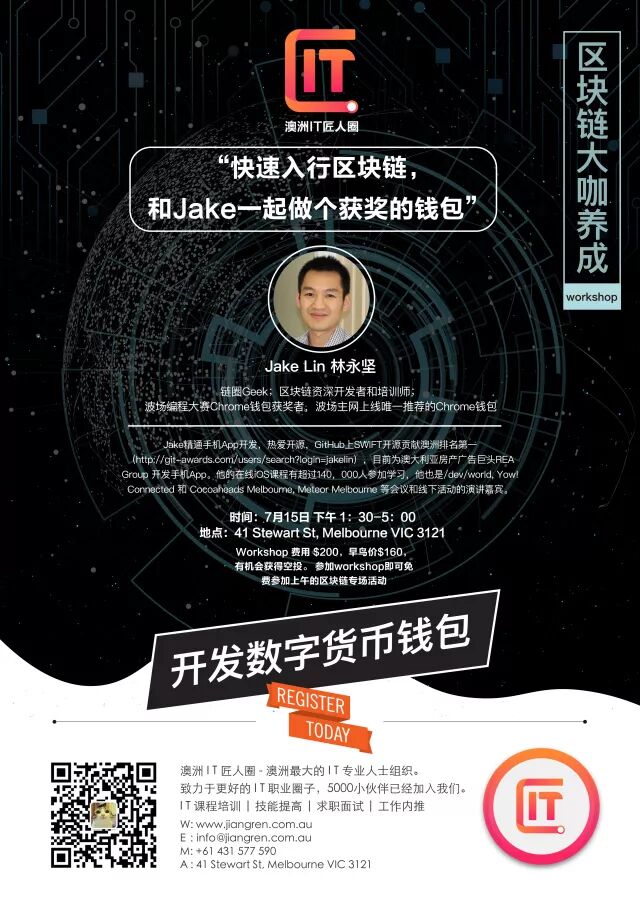 澳洲IT匠人圈 - 致力于做更好的IT专业人士组织。我们的初衷就是连接海内外的IT同仁,团结互助、工作内推、职场升迁,让在土澳的我们也能感受到高科技的光芒。IT匠人圈有一系列的品牌活动:Offer收割机、大咖面对面、匠人Workshop、匠人线上公开课、品牌创业之夜,活动开展以来反响强烈。