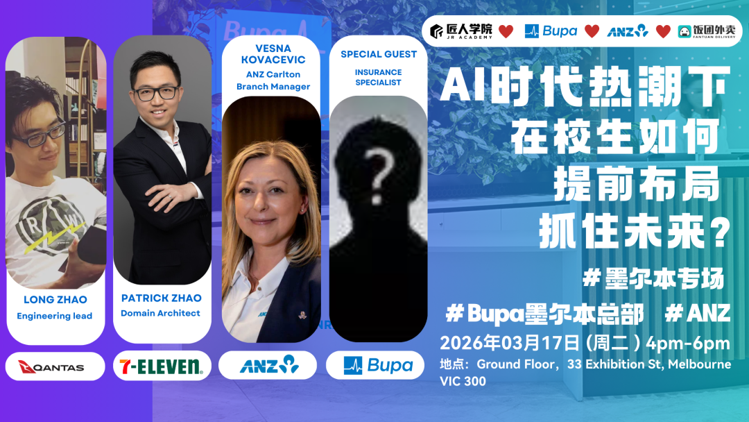 3月17号墨尔本Bupa总部线下MeetUp|Quantas,7-Eleven,Anz,Bupa嘉宾齐聚一堂!共话在校生的AI时代职业布局!