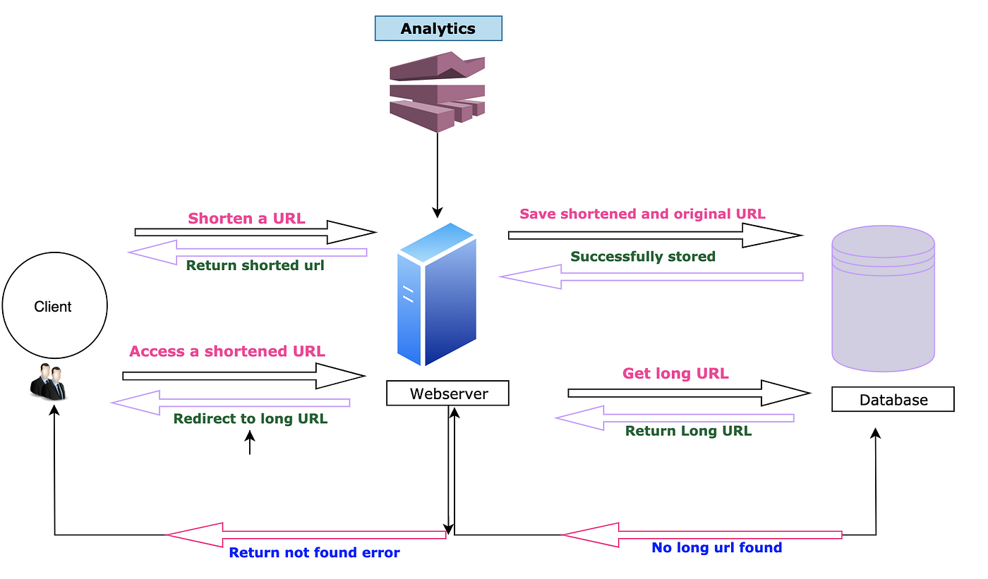 URL shortener 服务会把长 URL 生成一个 alias(短链接)。用户访问短链接时会被重定向到原始 URL。