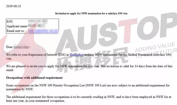 客户21 号获邀后,立刻进行190NSW STATE NOMINATION 的提交,材料完整,几天后就获批州政府的提名,可以递交签证。
