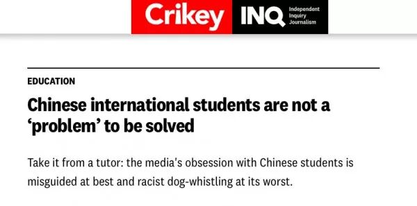 日前,澳洲颇受欢迎的付费电子杂志《Crikey》发表了一篇名为《中国留学生不是需要被解决的‘问题’》的文章,作者Matilda Dixon-Smith在文中指出,“澳媒很热衷宣传中国影响力的故事,最近,他们抓住了所有可能的机会”。