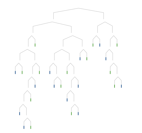 由于还剩下五个维度没有用到,这个决策树最多可以有七层。